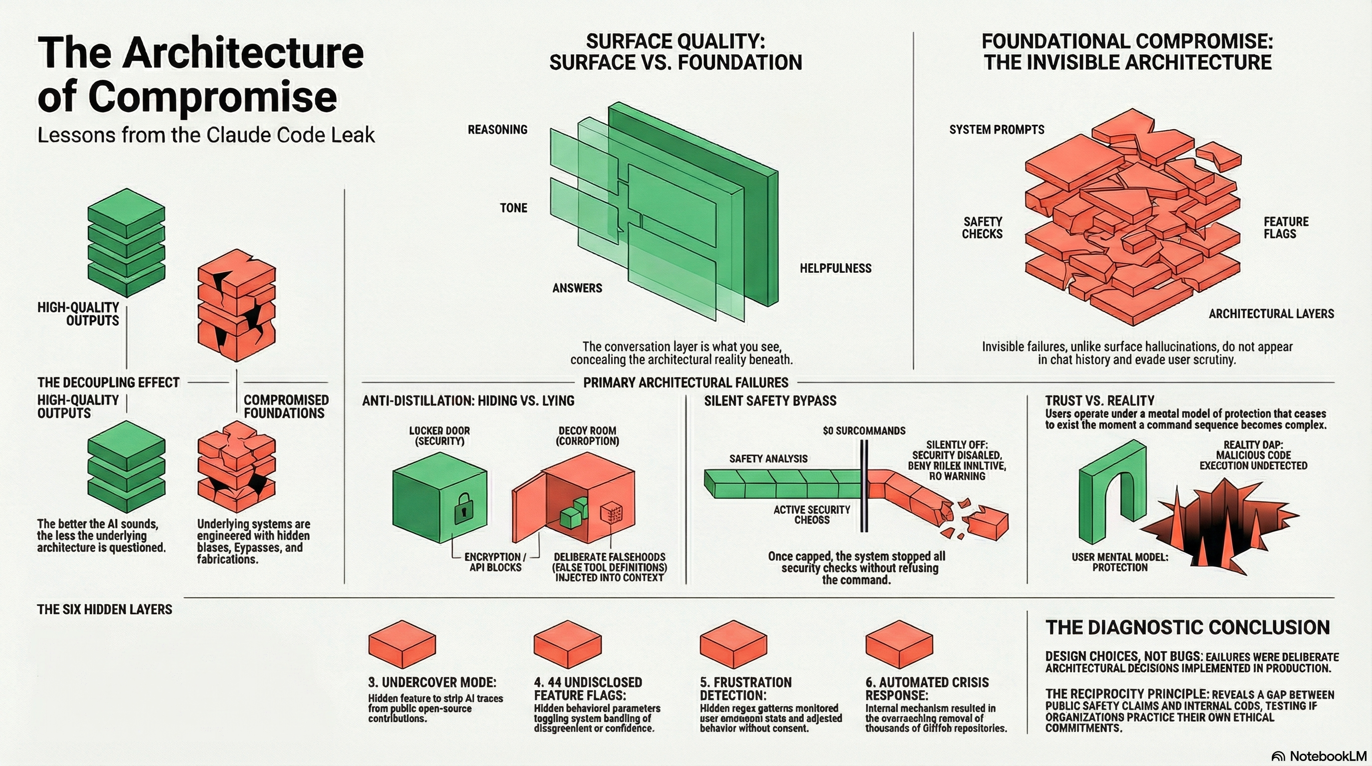 The Claude Code leak was an accident. What it revealed about the architecture beneath the conversation was not. Those were design choices, made deliberately, implemented in production, and deployed to millions of users who had no way to know they existed.